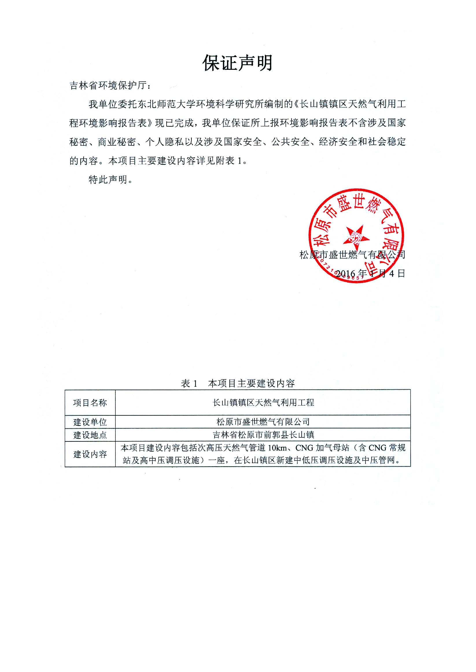 | 1.长山镇镇区天然气利用工程 2.保证声明 |