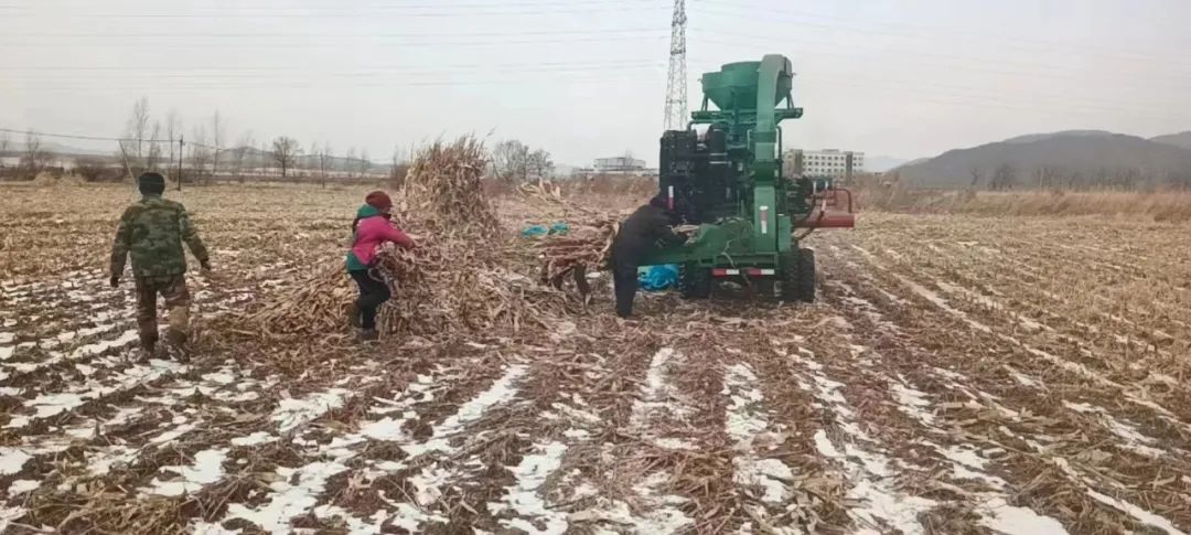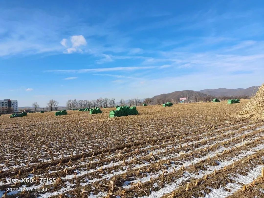 隆冬时节,永吉县口前镇蓝旗村的田间机声隆隆,4台大型秸秆打包机正在紧张地作业。成片的玉米秸秆被卷入打包机中,经过粉碎、除尘、压块后,一个个结实的秸秆捆包从车尾“翻滚”而出,散落到地上等待装车运走。