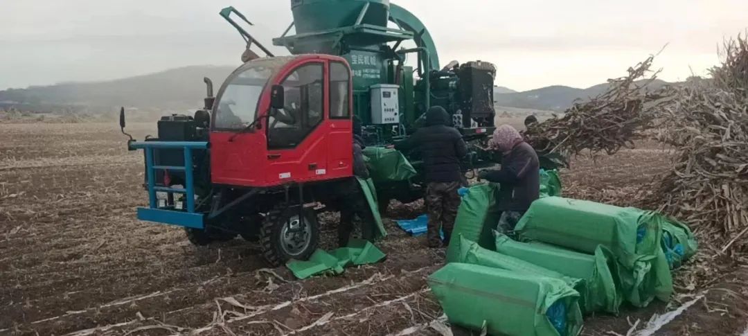 像这样的秸秆打包,蓝旗村的农业农民专业合作社和蓝旗村祥和草业的4台机器,每天开足马力能完成50余亩地。