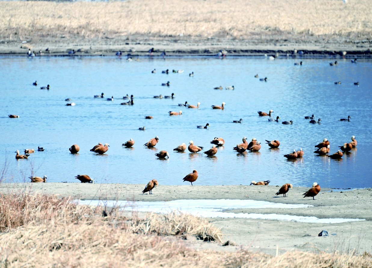 近日,气温转暖,吉林长春伊通河北湖大桥附近,聚集了成群的绿头鸭、赤麻鸭。春日里清澈的河水为野生水鸟提供了优质的栖息地,为城市的春天增添了活力与气息。