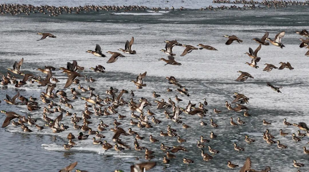 春风渐暖,冰融湖阔。眼下,吉林查干湖国家级自然保护区迎来春季候鸟迁徙高峰。