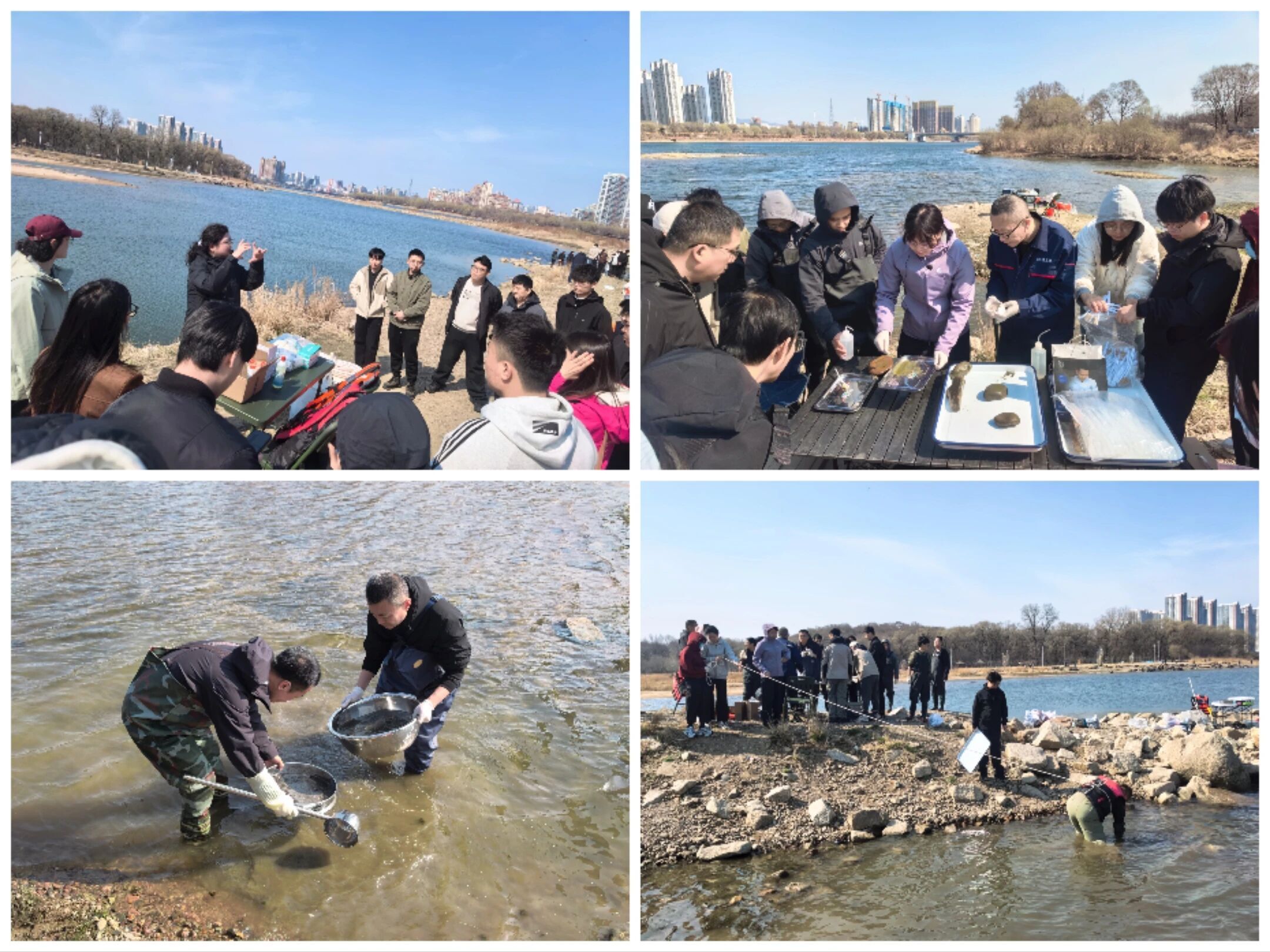 实操练兵环节,专家团队现场分组演示了大型底栖无脊椎动物、着生藻类等项目的标准化采样操作,每一个步骤都严谨细致、一丝不苟。随后,学员们分组开展采样技术练习与交流,大家积极动手、互相切磋,专家在旁逐一指导、纠偏答疑。