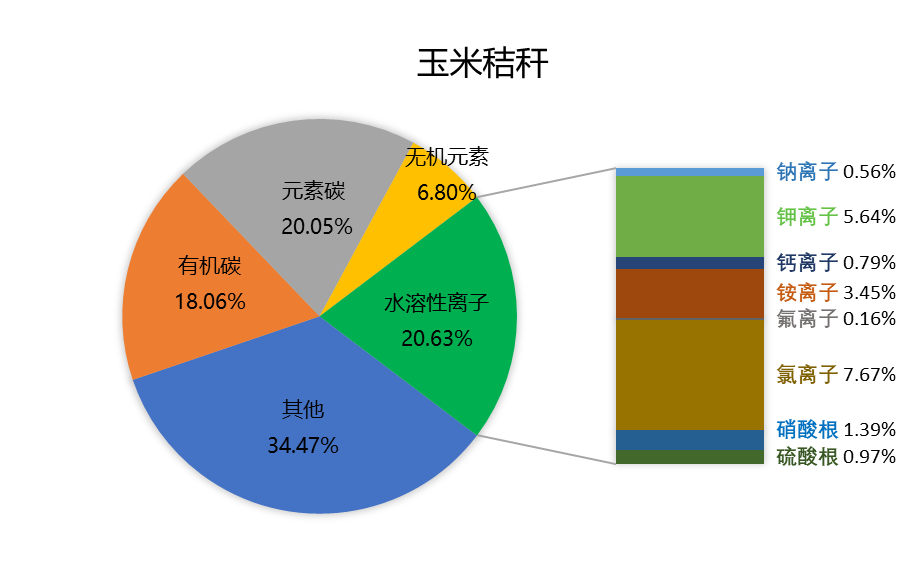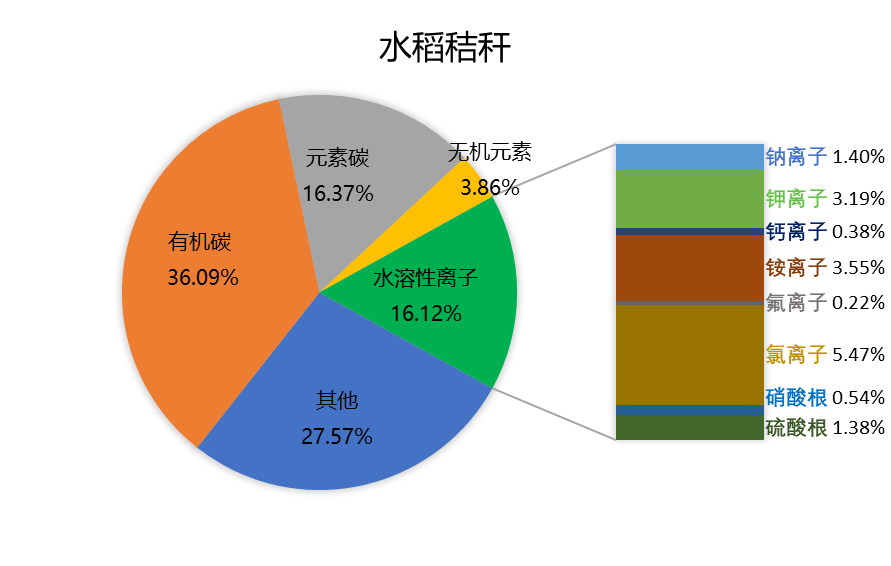 秸秆焚烧排放了大量的污染物,导致PM2.5浓度快速上升。秸秆种类不同,燃烧排放的PM2.5中化学组分组成也有差异,东北地区常见的水稻和玉米秸秆燃烧排放的PM2.5总体以碳质组分(有机物和元素碳)为主。