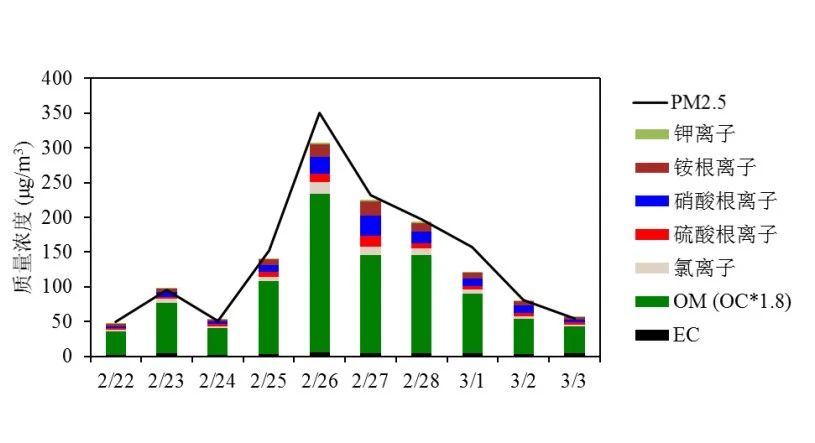 2019年2月底一次典型生物质燃烧重污染过程中PM2.5组分浓度变化