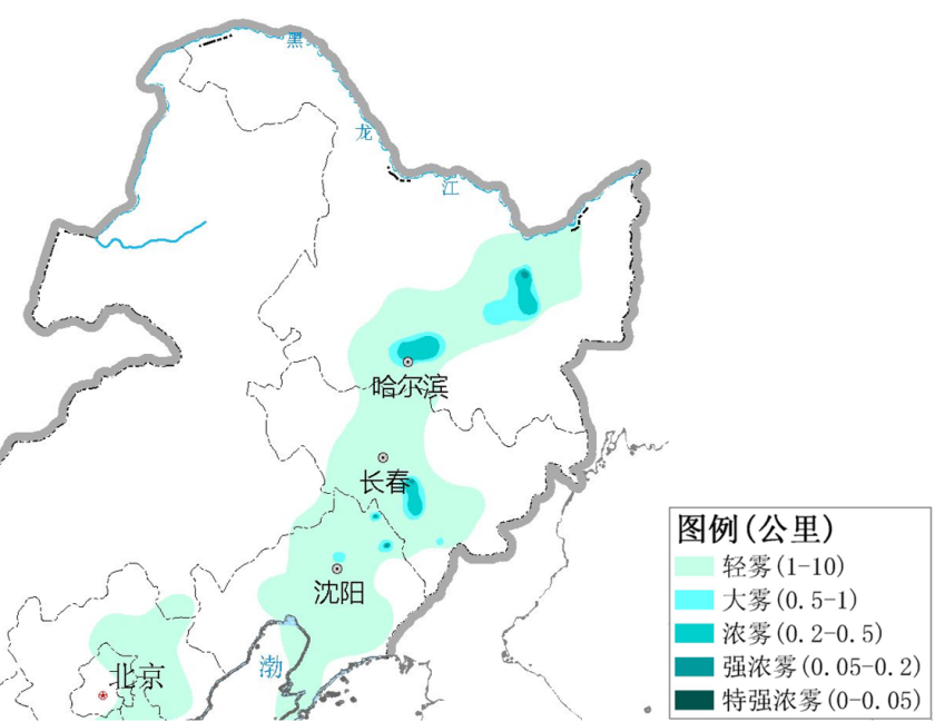 4月18日8时–19日8时东北地区雾预报图