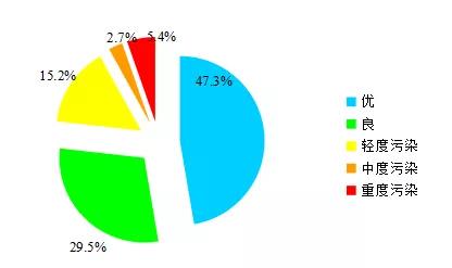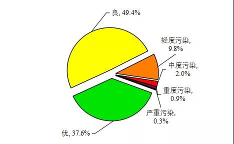 全国337个地级及以上城市平均优良天数比例为87.0%,同比上升5.0个百分点。202个城市环境空气质量达标,占全部地级及以上城市数的59.9%,同比增加45个。PM2.5年均浓度为33微克/立方米,同比下降8.3%;PM10年均浓度为56微克/立方米,同比下降11.1%。