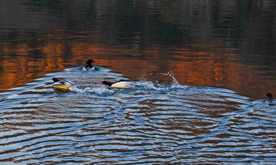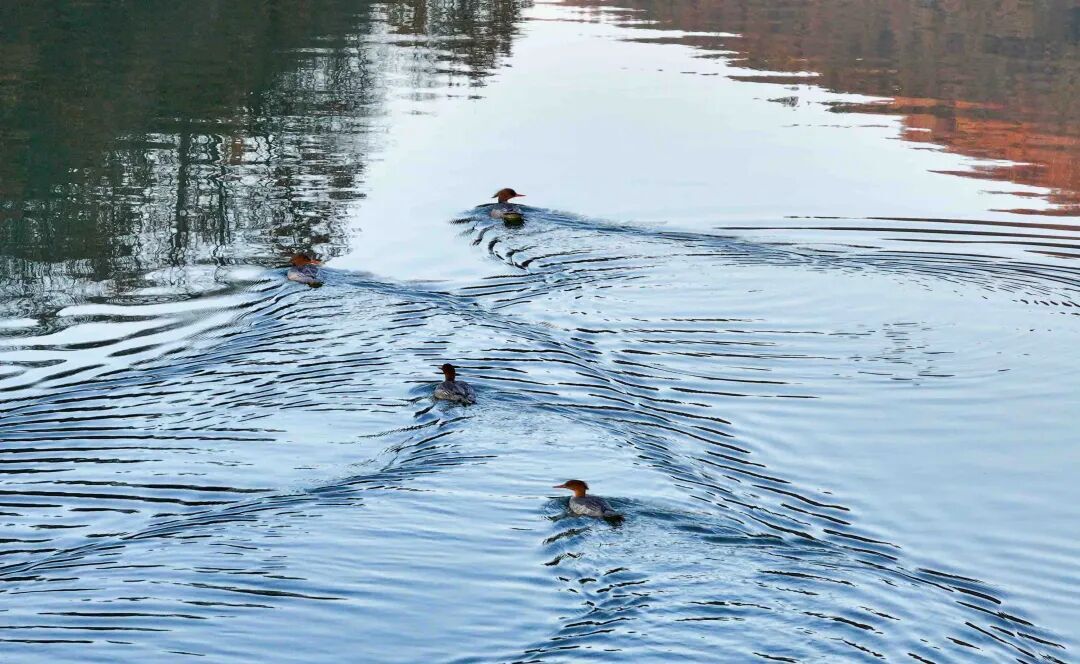 寒意初染长白山,秋阳仍暖碧水间。清澈的头道白河与抚松镇西江上,成群的中华秋沙鸭或扎入水底啄食肥鱼,或带领绒毛未褪的幼雏练习低空滑翔,灵动身影掠过斑斓秋林——这片“人与自然和谐共生”的土地,正成为第三纪冰川期遗存物种、国家一级保护动物中华秋沙鸭繁衍生息的乐园。