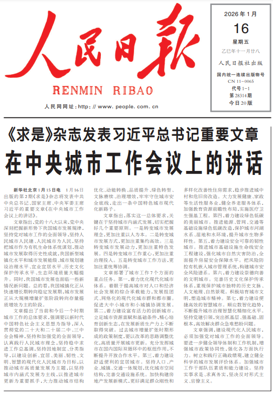 《求是》杂志发表习近平总书记重要文章 在中央城市工作会议上的讲话