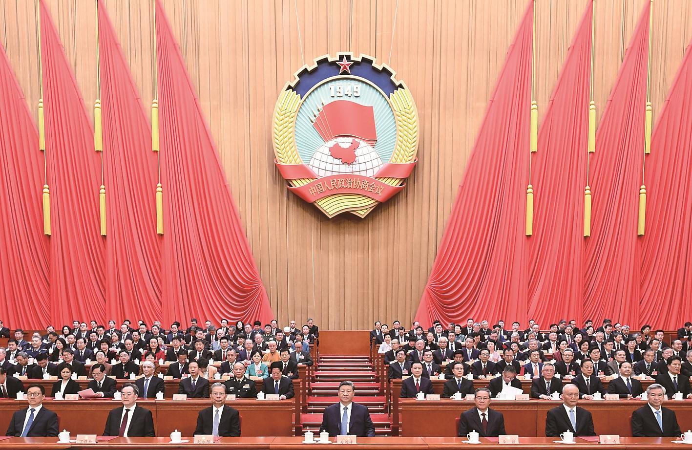 3月11日上午,中国人民政治协商会议第十四届全国委员会第四次会议在北京人民大会堂闭幕。全国政协主席王沪宁主持闭幕会并讲话。 新华社记者 黄敬文 摄