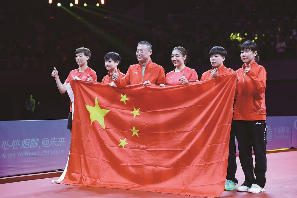 乒乓球项目女子团体决赛中,中国队以3比0战胜日本队,夺得冠军