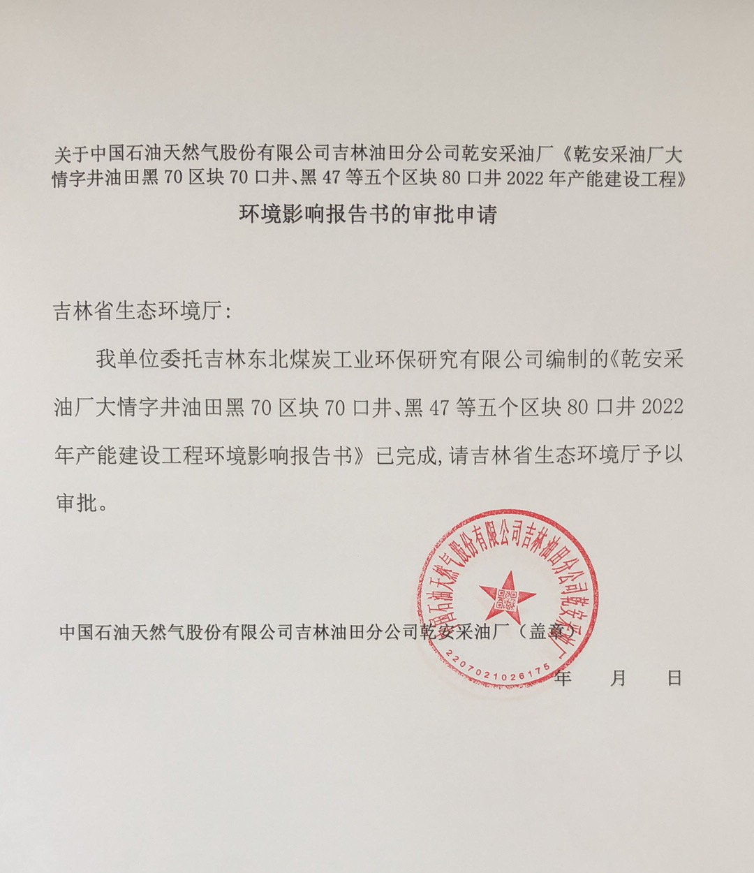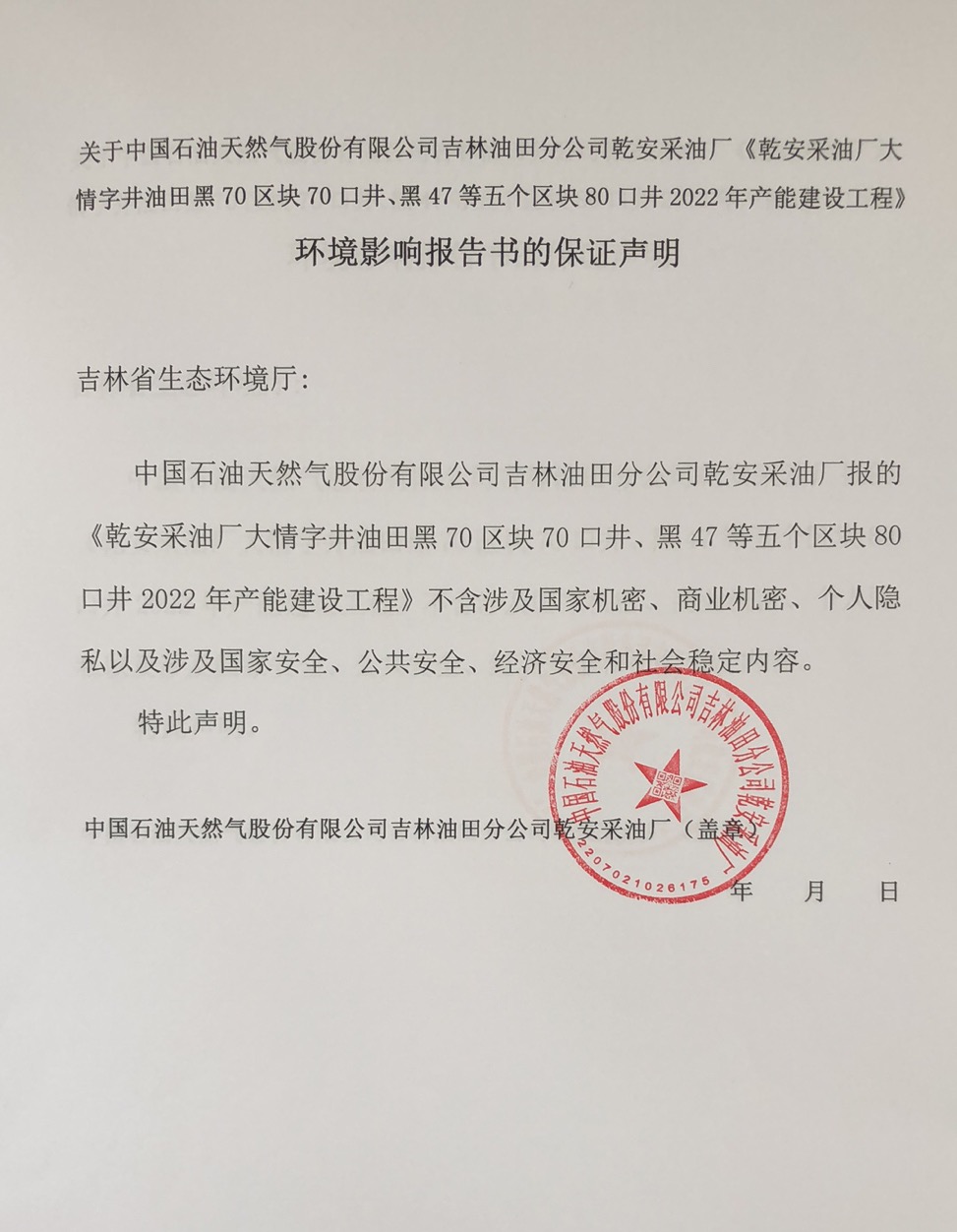 | 1.乾安采油厂2022年产能项目报告书.pdf 保证声明.jpg 审批申请.jpg 乾安—大情字井公众参与说明.docx |