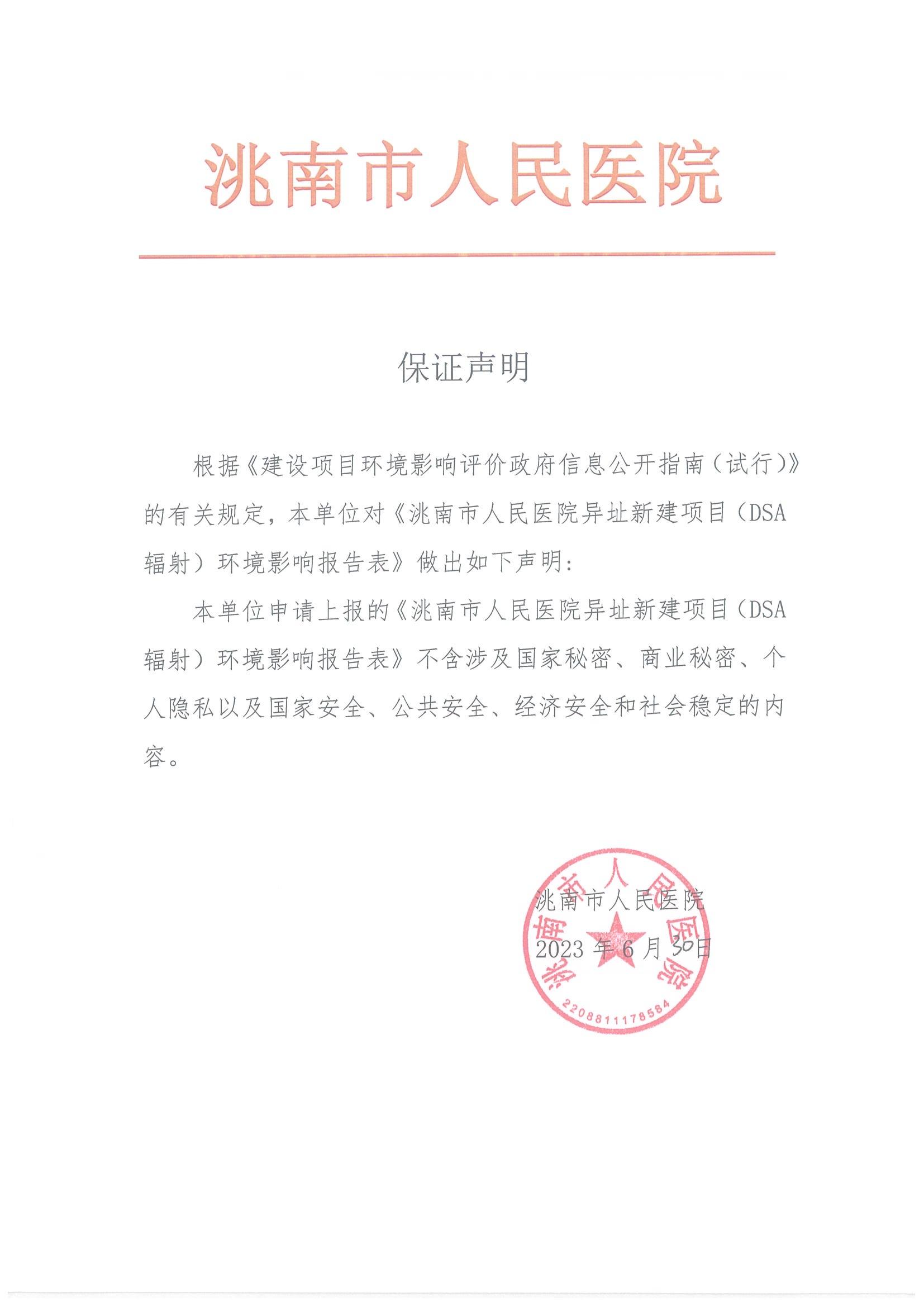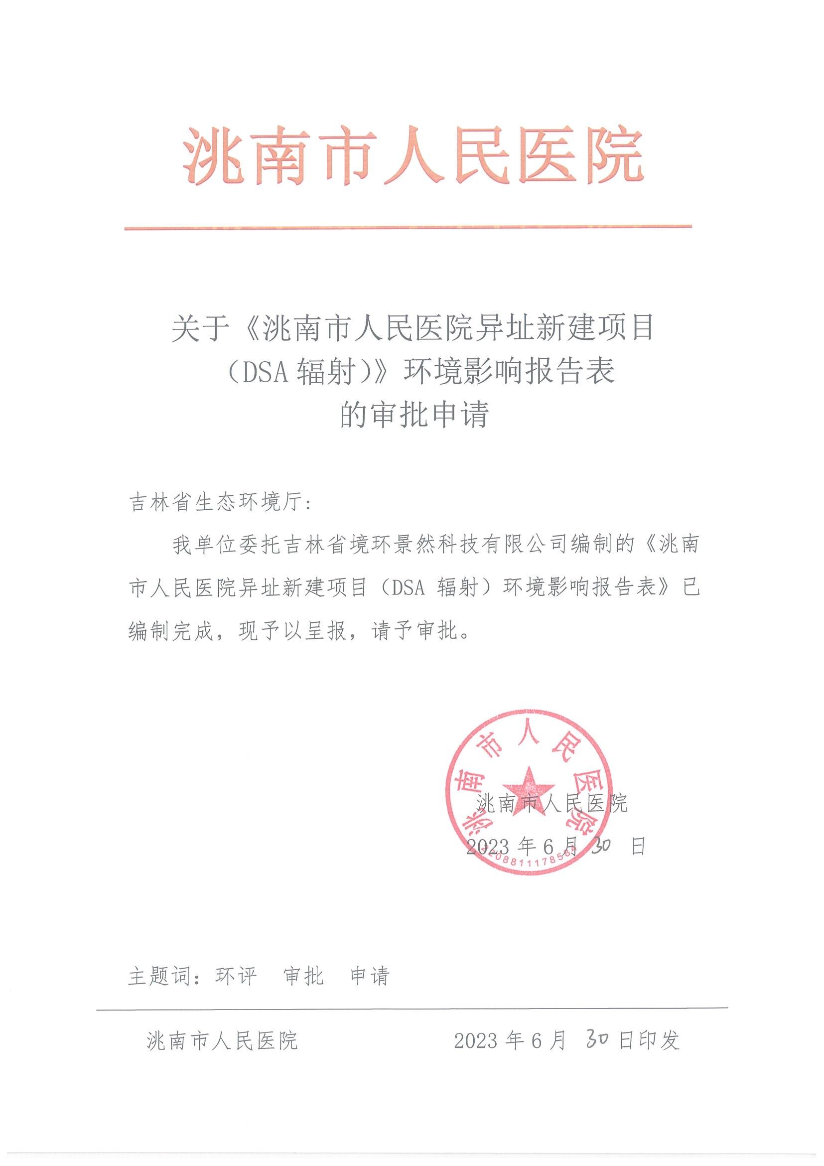 | (3)保密保证声明.jpg (4)审批申请.jpg (2)洮南市人民医院异址新建项目(DSA辐射).pdf |