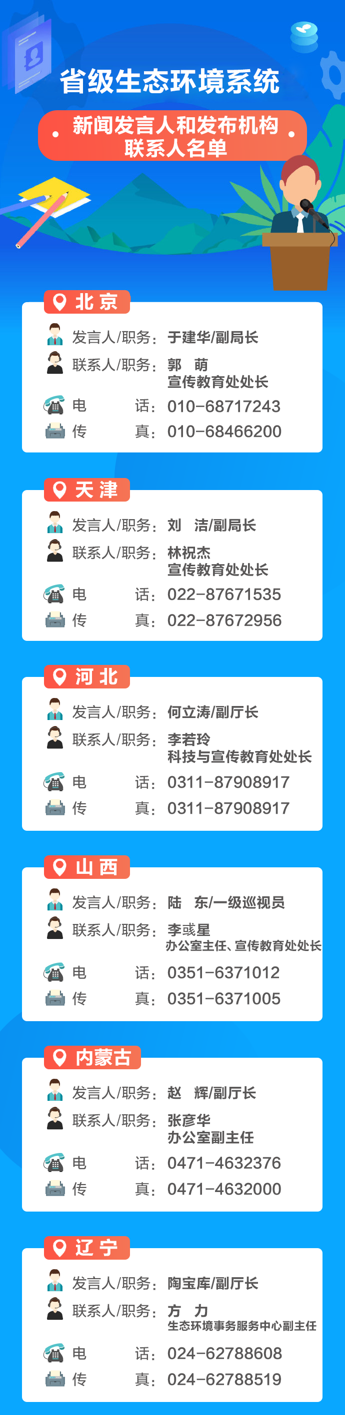 生态环境部公布省级生态环境系统新闻发言人和发布机构联系人名单