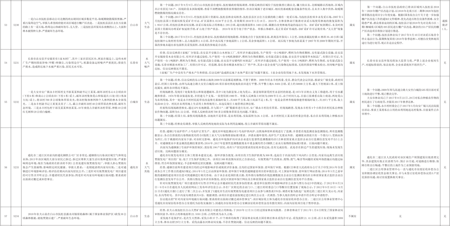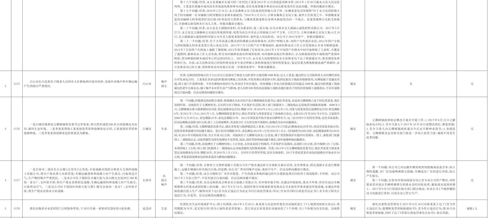 吉林省群众信访举报转办和边督边改公开情况一览表